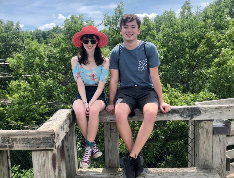 Once the worst of the pandemic had passed, we did actually go on some real dates. Here we are on a trip to Starved Rock with Laura and Alex. We like to make snacks and have movie nights together. We also love going to the farmers markets nearby on summer weekends.